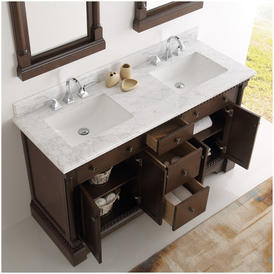 Kingston 61" Antique Coffee Double Sink Traditional Bathroom Vanity w/ Mirrors