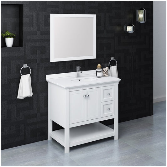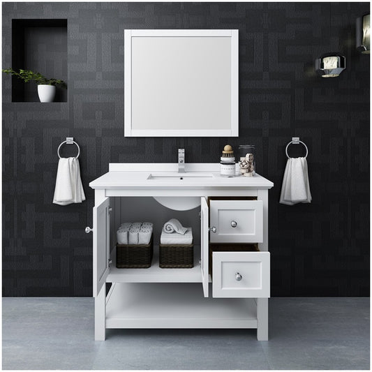 Fresca Manchester 42" White Traditional Bathroom Vanity w/ Mirror