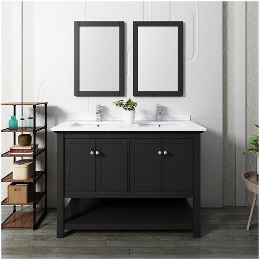 Fresca Manchester 48" Black Traditional Double Sink Bathroom Vanity w/ Mirrors