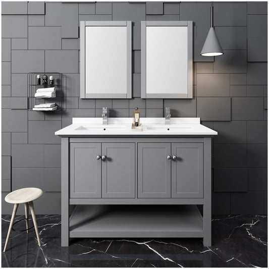 Fresca Manchester 48" Gray Traditional Double Sink Bathroom Vanity w/ Mirrors
