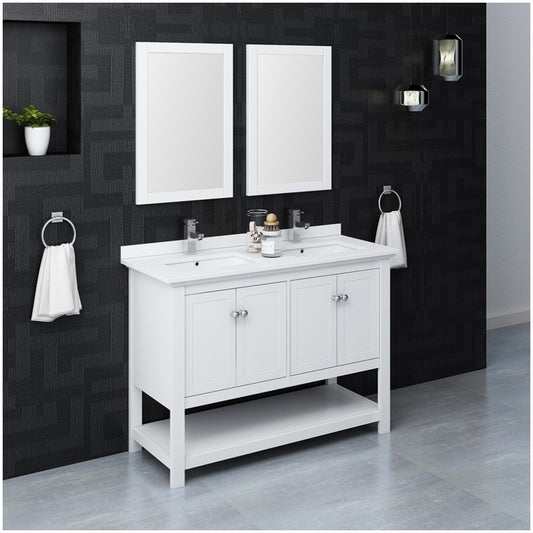 Fresca Manchester 48" White Traditional Double Sink Bathroom Vanity w/ Mirrors