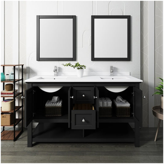 Fresca Manchester 60" Black Traditional Double Sink Bathroom Vanity w/ Mirrors