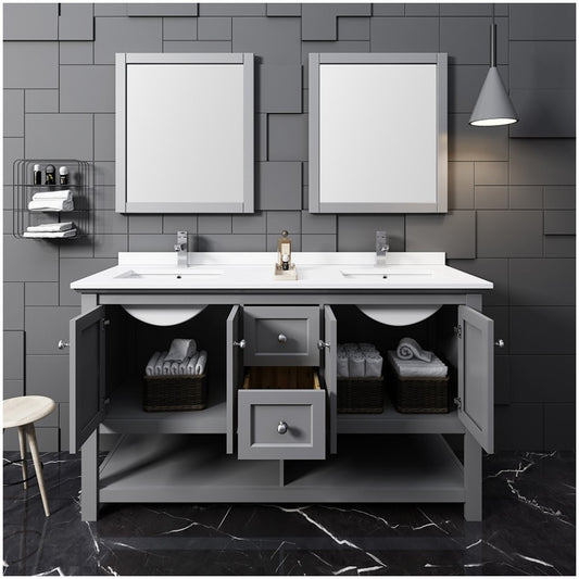 Fresca Manchester 60" Gray Traditional Double Sink Bathroom Vanity w/ Mirrors