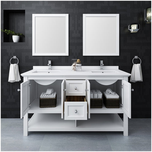 Fresca Manchester 60" White Traditional Double Sink Bathroom Vanity w/ Mirrors