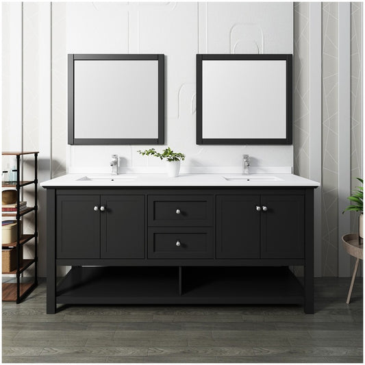 Fresca Manchester 72" Black Traditional Double Sink Bathroom Vanity w/ Mirrors