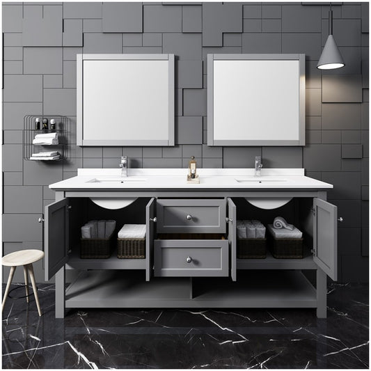 Fresca Manchester 72" Gray Traditional Double Sink Bathroom Vanity w/ Mirrors