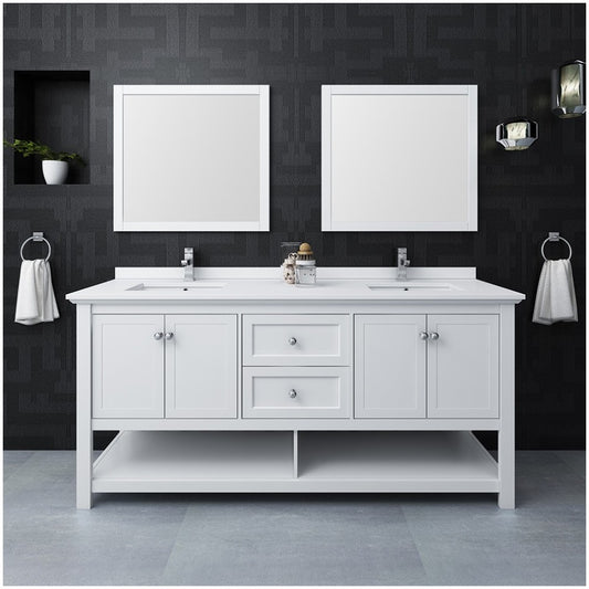 Fresca Manchester 72" White Traditional Double Sink Bathroom Vanity w/ Mirrors