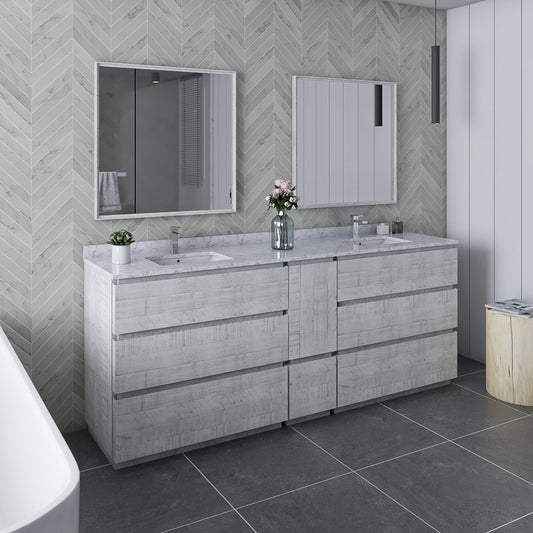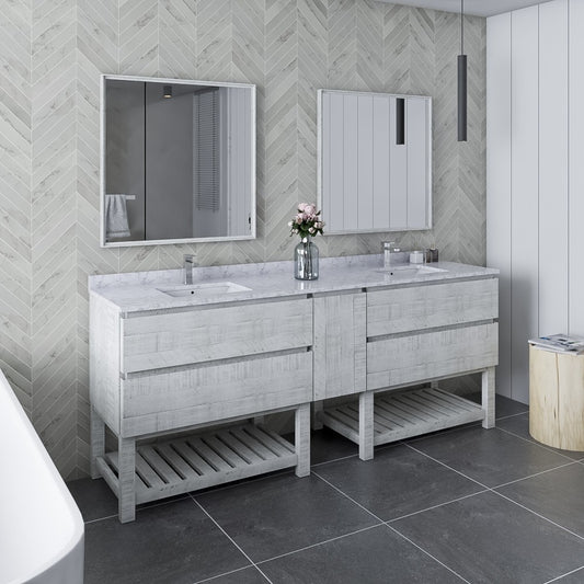 Fresca Formosa 84" Bathroom Vanity w/ Open Bottom & Mirrors in Rustic White