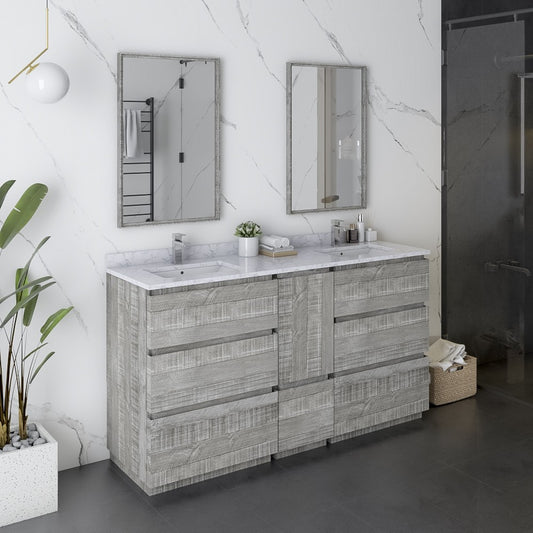 Fresca Formosa 72" Floor Standing Double Sink Bathroom Vanity w/ Mirrors in Ash