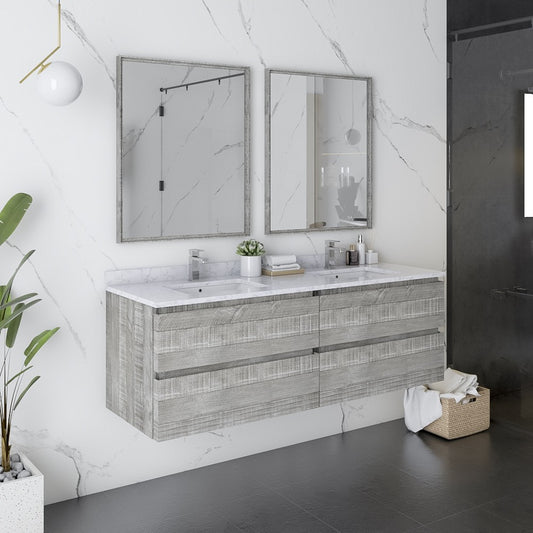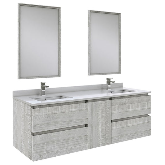 Fresca Formosa 60" Wall Hung Double Sink Bathroom Vanity w/ Mirrors in Ash
