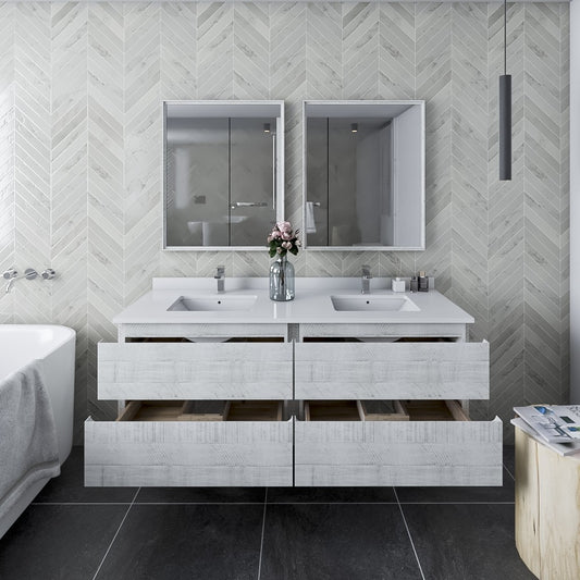 Fresca Formosa 72" Wall Hung Double Sink Bathroom Vanity in Rustic White
