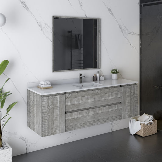 Fresca Formosa 60" Wall Hung Single Sink Modern Bathroom Vanity w/ Mirror in Ash