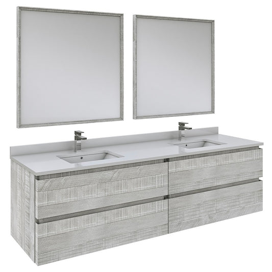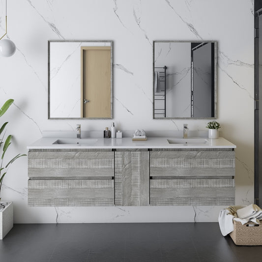 Fresca Formosa 72" Wall Hung Double Sink Bathroom Vanity w/ Mirrors in Ash