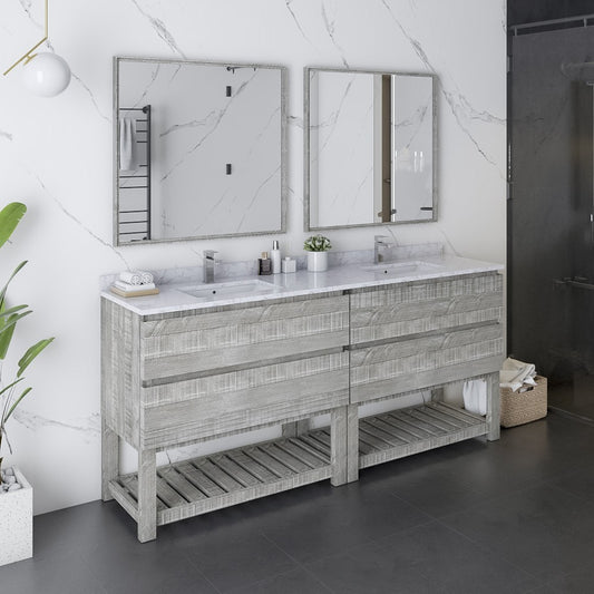 Fresca Formosa 72" Double Sink Bathroom Vanity w/ Open Bottom & Mirrors in Ash