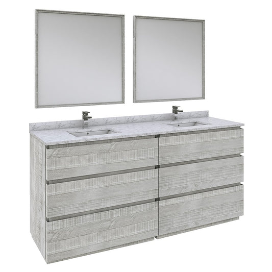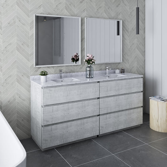 Fresca Formosa 72" Double Sink Bathroom Vanity w/ & Mirrors in Rustic White