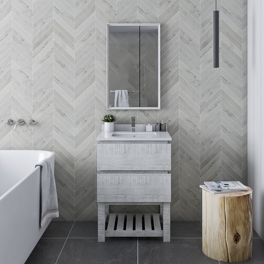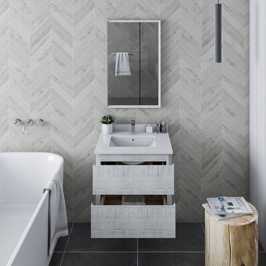 Fresca Formosa 24" Wall Hung Modern Bathroom Vanity w/ Mirror in Rustic White