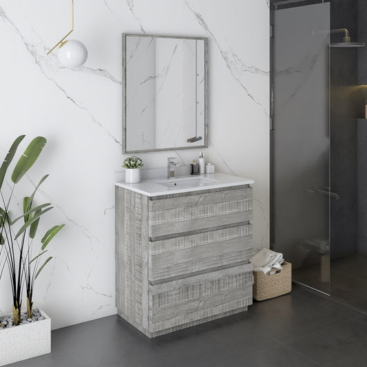 Fresca Formosa 30" Floor Standing Modern Bathroom Vanity w/ Mirror in Ash