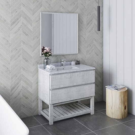 Fresca Formosa 36" Bathroom Vanity w/ Open Bottom & Mirror in Rustic White