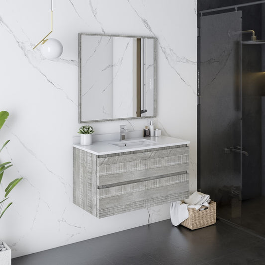 Fresca Formosa 36" Wall Hung Modern Bathroom Vanity w/ Mirror in Ash