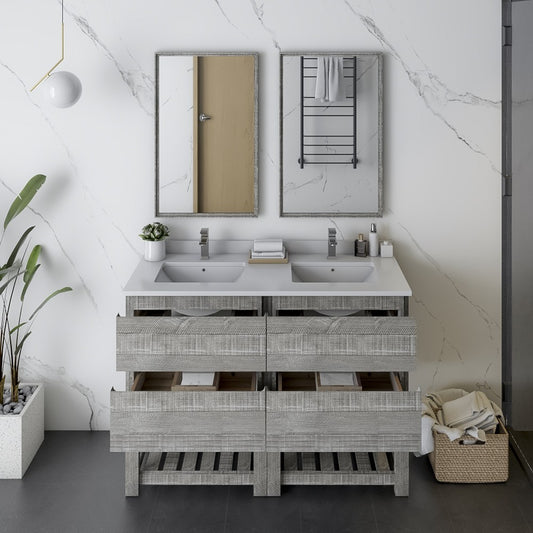 Fresca Formosa 48" Double Sink Modern Bathroom Vanity w/ Open Bottom & Mirrors