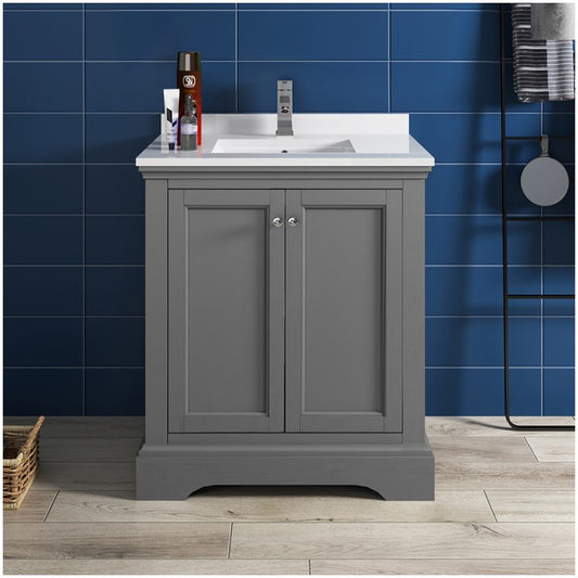 Fresca Windsor 30" Gray Textured Traditional Bathroom Cabinet w/ Top & Sink