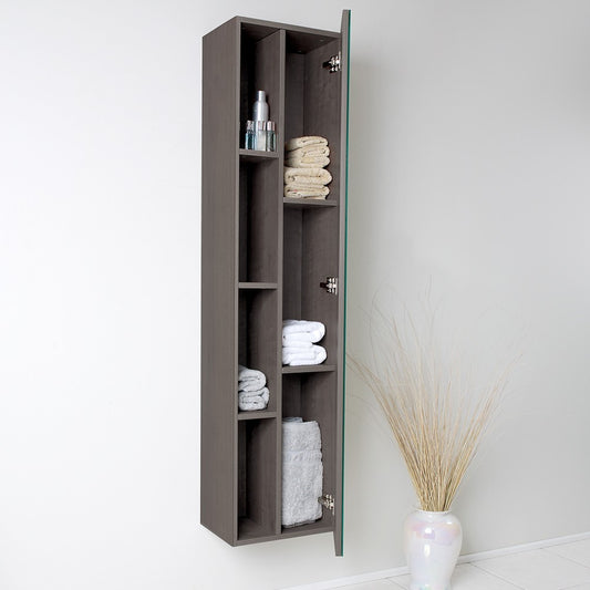 Fresca Gray Oak Bathroom Linen Side Cabinet w/ 4 Cubby Holes & Mirror