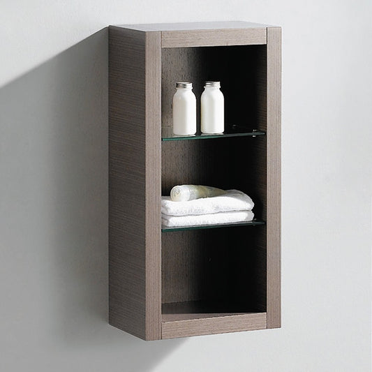 Fresca Allier Gray Oak Bathroom Linen Side Cabinet w/ 2 Glass Shelves