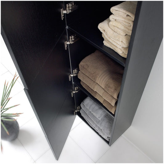 Fresca Black Bathroom Linen Side Cabinet w/ 3 Large Storage Areas