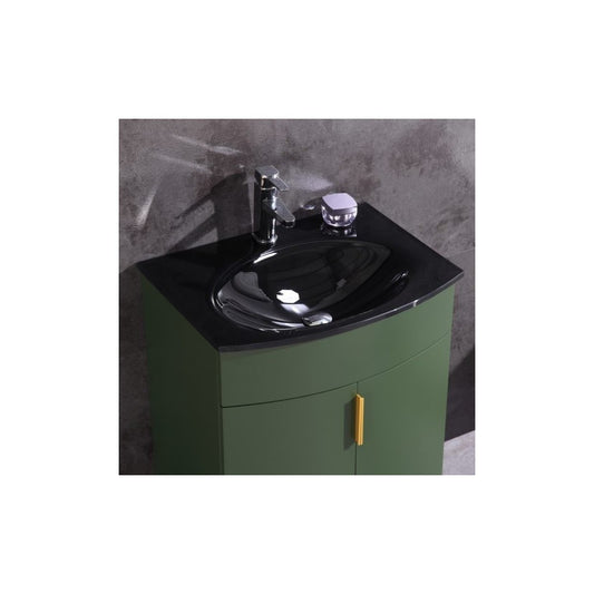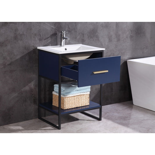 24" Blue Finish Sink Vanity With Black Metal Frame-Pvc