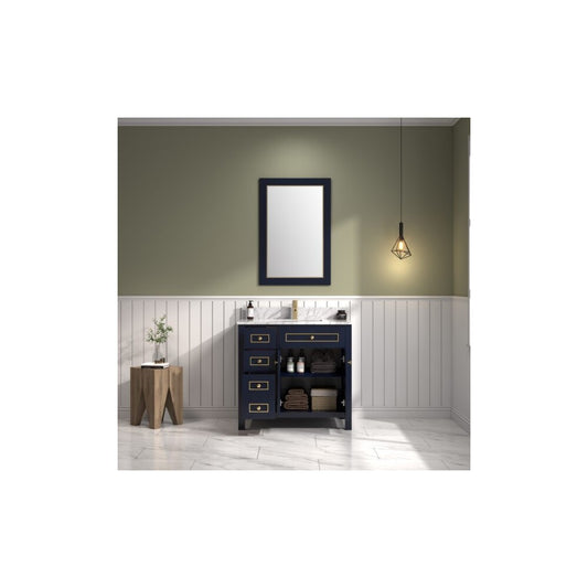 36" Blue Finish Sink Vanity Cabinet With Carrara White Top