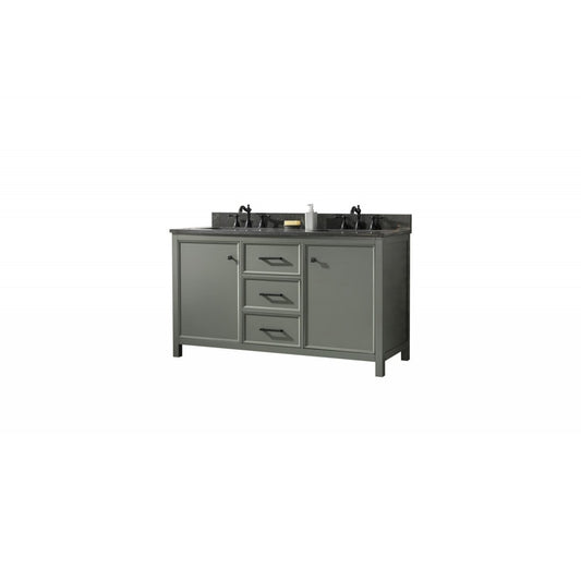 60" Pewter Green Finish Sink Vanity Cabinet With Blue Lime Stone Top