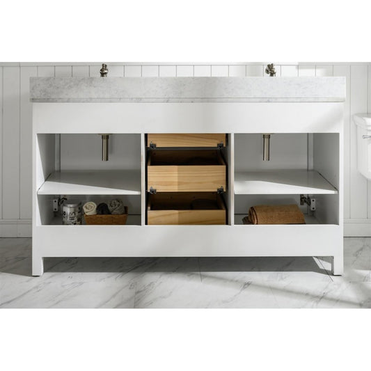 60" Blue Finish Sink Vanity Cabinet With Carrara White Top