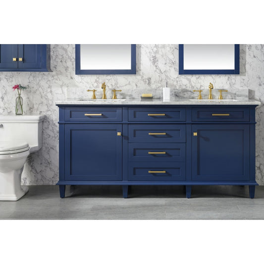 72" Blue Double Single Sink Vanity Cabinet With Carrara White Top