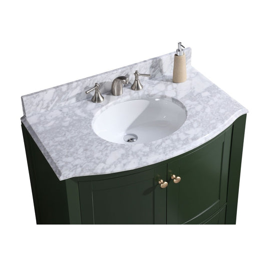 36" White Finish Sink Vanity Cabinet With Carrara White Top