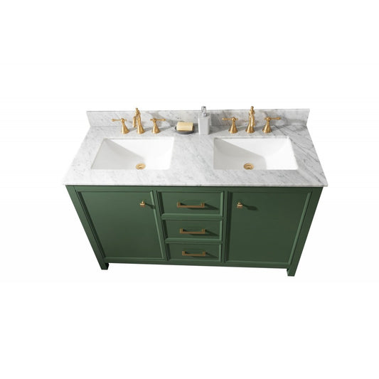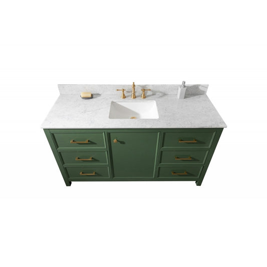 Legion Furniture 54" Green Finish Sink Vanity Cabinet With Carrara White Top
