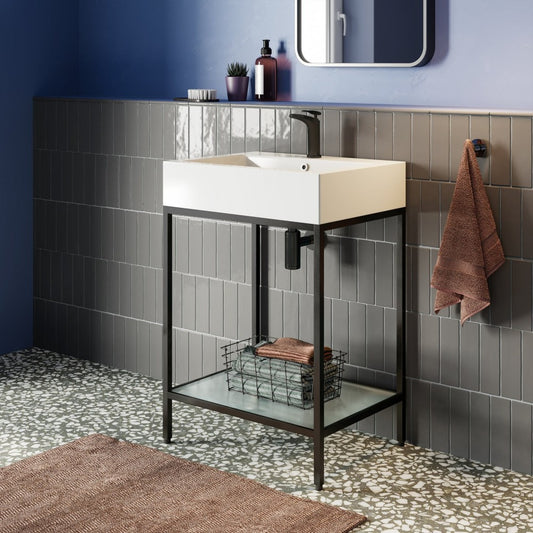 Pierre 24 Single, Freestanding, Matte Black Metal Frame Bathroom Vanity