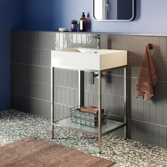 Pierre 24 Single, Freestanding, Open Shelf, Chrome Metal Frame Bathroom Vanity