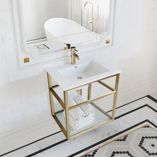 Pierre 24 Single, Open Shelf, Gold Metal Frame Bathroom Vanity