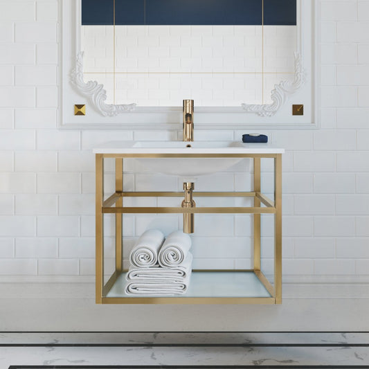 Pierre 30 Single, Open Shelf, Gold Metal Frame Bathroom Vanity