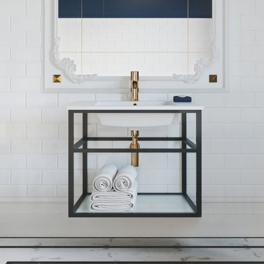 Pierre 30 Single, Open Shelf, Matte Black Metal Frame Bathroom Vanity