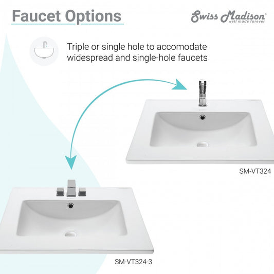 Swiss Madison Ceramic Vanity Top 24 with Three Faucet Holes