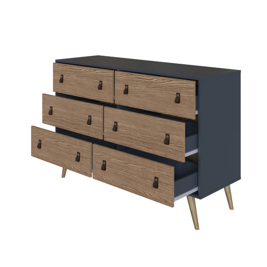 Amber Double Wide Dresser and Nightstand - Set of 2 in Blue and Nature