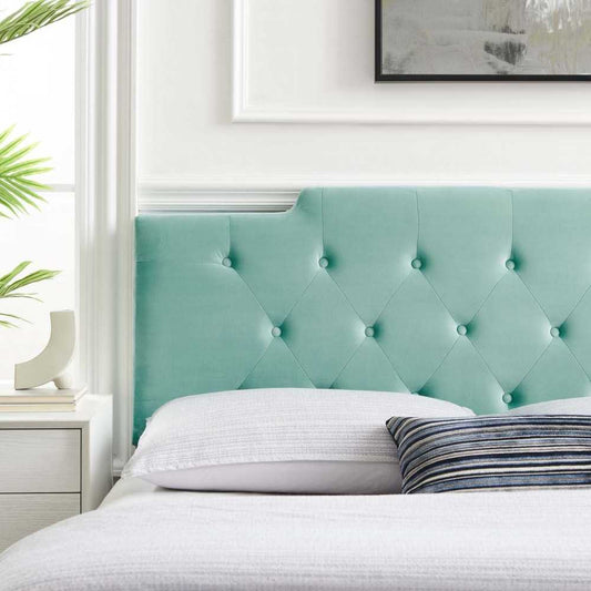 Juliet Tufted Full/Queen Performance Velvet Headboard, Mint