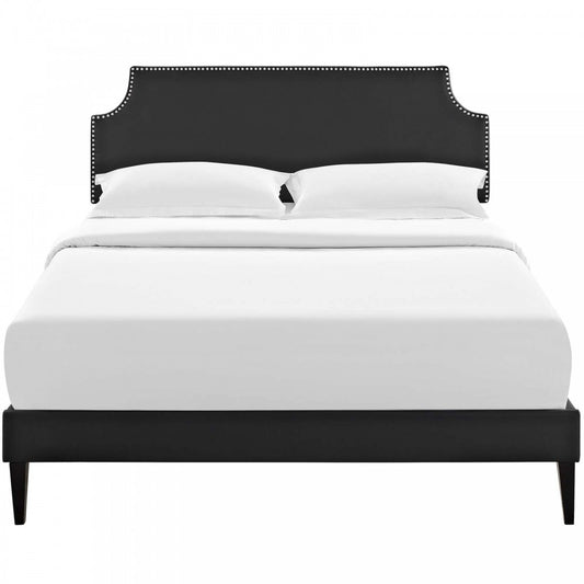 Corene Queen Vinyl Platform Bed with Squared Tapered Legs, Black