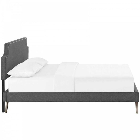 Corene Queen Fabric Platform Bed with Squared Tapered Legs, Gray