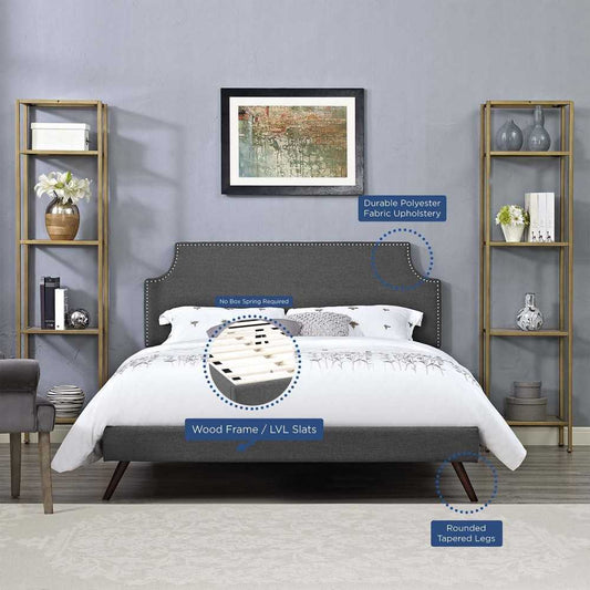Corene Full Fabric Platform Bed with Squared Tapered Legs, Gray