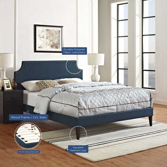 Corene Full Fabric Platform Bed with Squared Tapered Legs, Azure