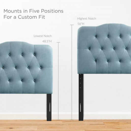 Annabel Twin Diamond Tufted Performance Velvet Headboard, Light Blue