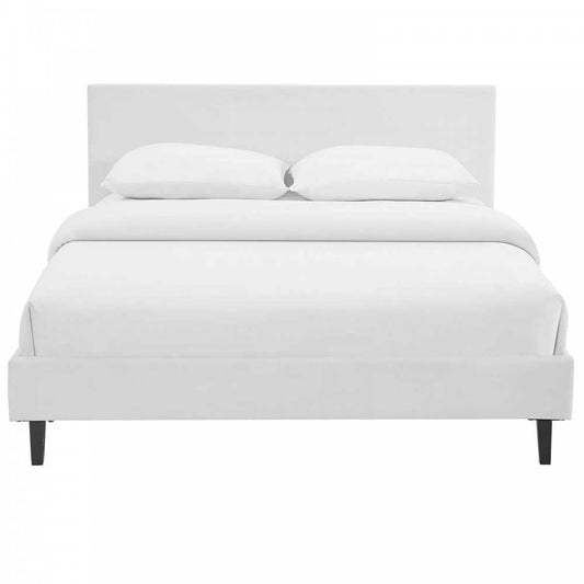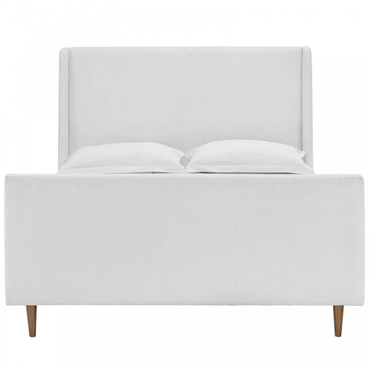 Aubree Queen Upholstered Fabric Sleigh Platform Bed, White