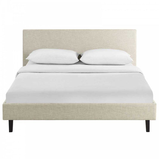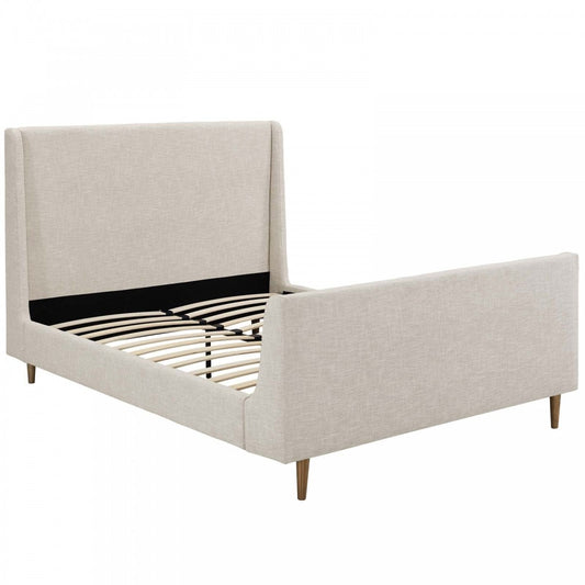 Aubree Queen Upholstered Fabric Sleigh Platform Bed, Beige